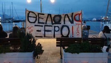 «Θέλω να ξέρω», είπαν οι κάτοικοι στην Παλαιά προβλήτα της Αίγινας, στη συγκέντρωση αλληλεγγύης στον απεργό πείνας Πάνο Ρούτσι, τον πατέρα του…