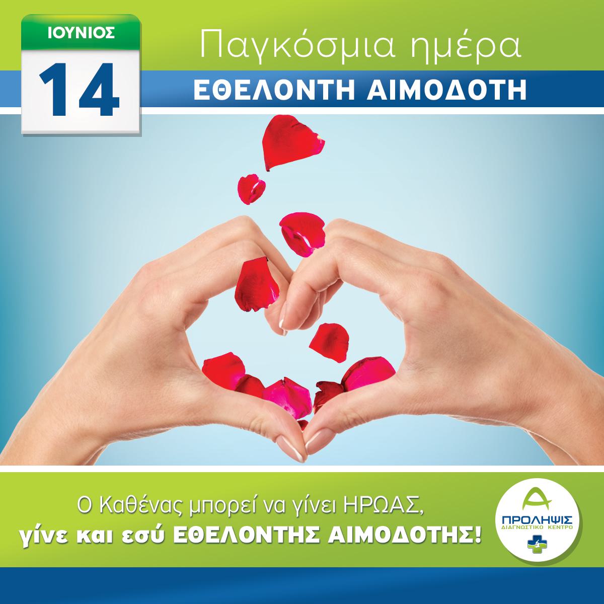 14 Ιουνίου έχει καθιερωθεί ως μέρα που τιμούμε τον άνθρωπο που επιλέγει να «προσφέρει» δίχως αντάλλαγμα και επιπρόσθετα να σηματοδοτήσει την προσπάθεια για προσέλκυση νέων και τακτικών εθελοντών αιμοδοτών!