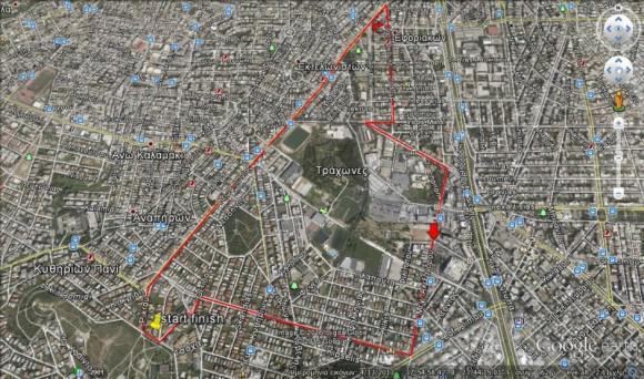 2) Περιγραφή Διαδρομής Ο αγώνας ξεκινά από το Λόφο Πανί κατεβαίνει την Ιωνίας, στρίβει δεξιά στην Χαριλάου Τρικούπη, έπειτα συνεχίζει στην Εθνικής Αντιστάσεως, μεγάλου Αλεξάνδρου, στρίβει δεξιά στην Αγίου Γεωργίου και Μυρτιδιωτίσης για να επιστρέψει πάλι στο Λόφο Πανί. Επίσης να ενημερώσουμε ότι για τα 10χλμ η διαδρομή επαναλαμβάνεται.
