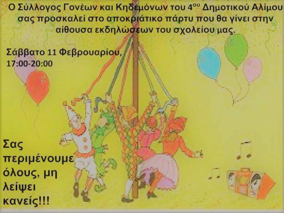 Με χαρά περιμένουμε τους μικρούς φίλους του σχολείου μας, σε ένα ξέφρενο αποκριάτικο πάρτυ, με πολύ χορό, μουσική και παιχνίδια με το γαϊτανάκι!!