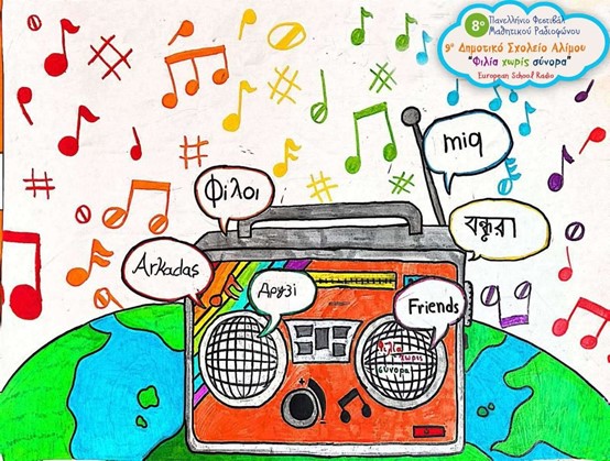 Σε αυτή την ετήσια τριήμερη γιορτή γνωριμίας και συνεργασίας των σχολείων του Μαθητικού Ραδιοφώνου, European School Radio, έρχεται να δηλώσει συμμετοχή στο Μαθητικό Διαγωνισμό Ραδιοφωνικού Μηνύματος και Τραγουδιού «Καν΄το ν΄ακουστεί 2024» το 9ο Δημοτικό Σχολείο Αλίμου, στην κατηγορία Ραδιοφωνικό Μήνυμα με θέμα: «Φιλία χωρίς Σύνορα»