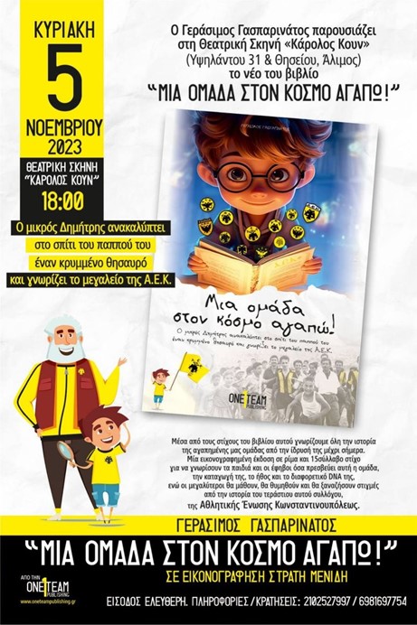 ΑΕΚ- «Μια ομάδα στον κόσμο αγαπώ!» Η ιστορία της ΑΕΚ μέσα από ένα παιδικό βιβλίο «ξετυλίγεται» στο θέατρο Κάρολος Κουν