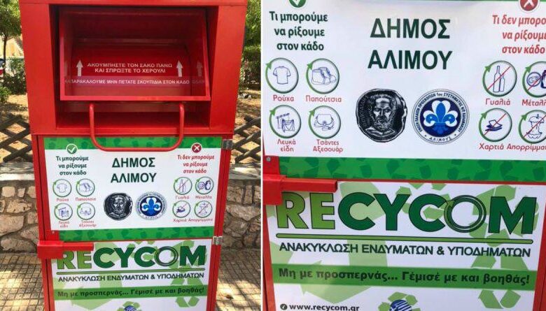 25 κόκκινοι κάδοι ανακύκλωσης μας περιμένουν σε κεντρικά σημεία της πόλης. Η εταιρεία Recycom θα πάρει τα παλιά ρούχα από τους κάδους και θα προσφέρει ως αντάλλαγμα είδη απαραίτητα για το Κοινωνικό Παντοπωλείο του Δήμου.