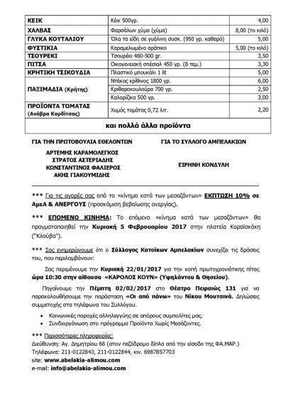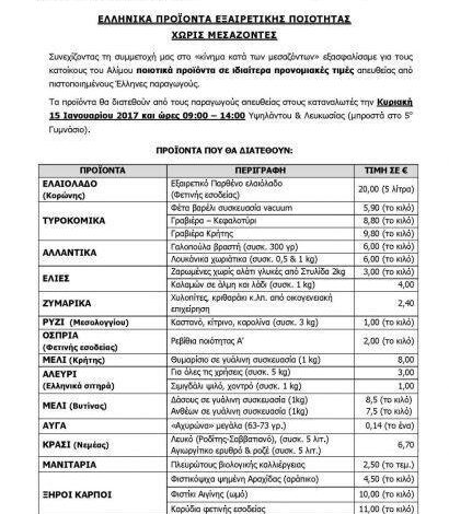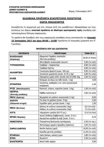 Την Κυριακή 15 Ιανουαρίου και ώρες 09:00 – 14:00, θα γίνει το παζάρι των παραγωγών, στον Άλιμο (Υψηλάντου & Λευκωσίας), που διοργανώνουν ο σύλλογος Αμπελακίων και η Πρωτοβουλία Εθελοντών.