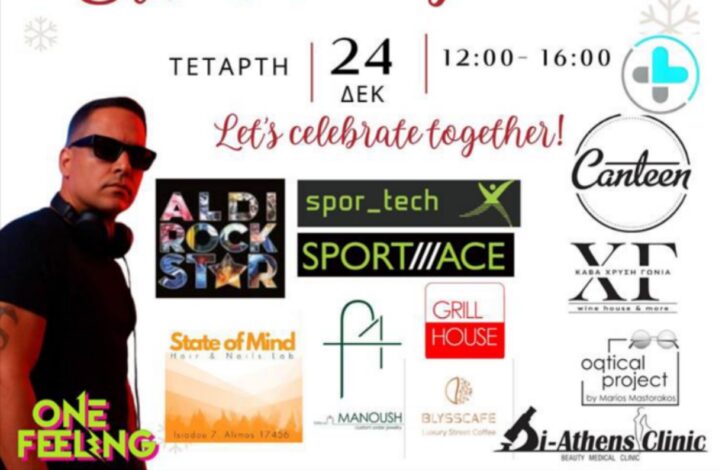 Tα καταστήματα Αldi Rock Star, State of Mind, Fatto a Manoush Custom order jewelry, Canteen, Grill House, Φαρμακείο Ντίσιου, Optical Project, spor_tech, Κάβα Χρυσή Γωνία, BlyssCafe, Sportace, Di Athens CLINIC μας καλούν σε ένα μοναδικό Christmnas Street Party, με ελληνικές και ξένες επιτυχίες των 80s-90s που όλοι αγαπήσαμε και χορέψαμε!