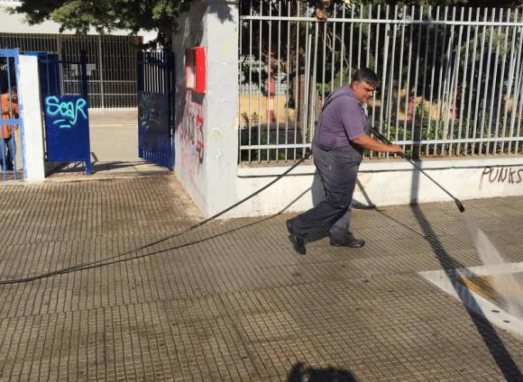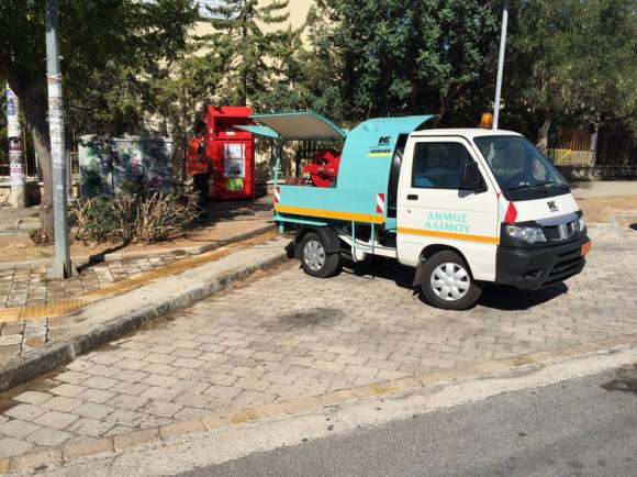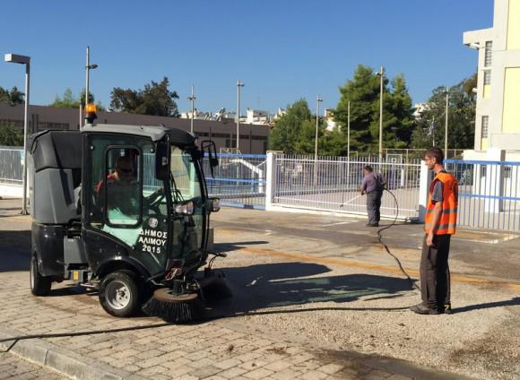 Επιχείρηση καθαριότητας στα εκλογικά κέντρα ξεκίνησαν από νωρίς το πρωί της Παρασκευής τα συνεργεία του δήμου Αλίμου, στα δυο εκλογικά κέντρα της πόλης, στο Άνω και στο Κάτω Καλαμάκι. Με πλυστικά μηχανήματα έπλυναν τα πεζοδρόμια και τους προαύλιους χώρους για να είναι όλα καθαρά την Κυριακή των εκλογών. Στην επιχείρηση πήρε μέρος και το καινούριο απόκτημα της υπηρεσίας καθαριότητας, ένα όχημα με σκούπες που κινείται με ευελιξία και μαζεύει τα σκουπίδια (γόπες, χαρτιά, φύλλα κλπ) από παντού.