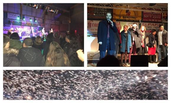 Οι διασκευές την λατρεμένης μπάντας κατέκλυσαν τον χώρο. Τραγούδια, γέλια, χορός, ήταν η μόνη εικόνα που έβλεπες στο κλειστό της Ελευθερίου Βενιζέλου. Ρεμπέτικα, λαϊκά και ελαφρολαϊκά ακούσματα σε ξυπνούσαν και σε προσκαλούσαν σε μια γιορτή που δεν μπορούσες και δεν ήθελες να αντισταθείς. «Ακρογιαλιές δειλινά», «Πήρα απ το χέρι σου νερό», «Θλίψη», «Συγχώρα με μουρμούρα μου», ήταν κάποια από τα κομμάτια που αποθέωσαν το κοινό.