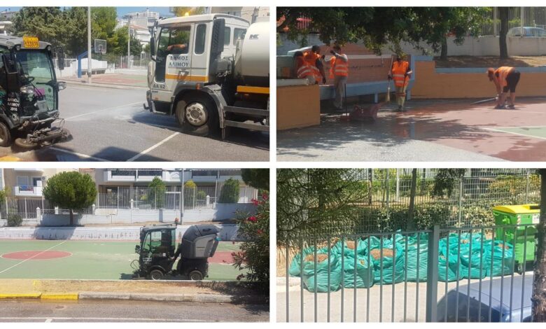 Οι εργασίες από το Τμήμα Καθαριότητας και το Τμήμα Πρασίνου του Δήμου Αλίμου προχωράνε με εντατικούς ρυθμούς, ώστε στις 7 Σεπτεμβρίου όλες οι σχολικές μονάδες να είναι καθαρές, ασφαλείς υγειονομικά και πανέτοιμες να υποδεχτούν τους μαθητές και τις μαθήτριες.