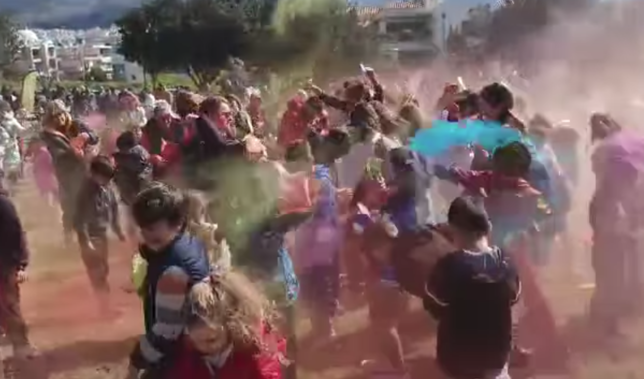 Μόνο που φέτος υπήρχε κάτι διαφορετικό. Το “αλεύρι” ήταν πολύχρωμο κάνοντας τους μικρούς, που το καταδιασκέδασαν να μοιάζουν με ουράνια τόξα. Τα “αλευροσκάγια” πήραν και όσους μεγάλους δεν πρόλαβαν να απομακρυνθούν με εξαίρεση το δήμαρχο που φρόντισε να βρίσκεται σε απόσταση ασφαλείας….