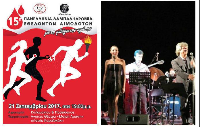 Πέμπτη 21 Σεπτεμβρίου 201715η ΛαμπαδηδρομίαΓια 15η χρονιά ο σύλλογος Αιμοδοτών διοργανώνει λαμπαδηδρομία μεταφέροντας το μήνυμα της εθελοντικής αιμοδοσίας. 17:00 – 20:30Συναυλία «Τα τραγούδια του Ελληνικού σινεμά» με το μουσικό συγκρότημα του Τάσου ΚατοπόδηΑνοιχτό θέατρο «Μαίρη Αρώνη», Πλατεία Καραϊσκάκη (Άνω Καλαμάκι).