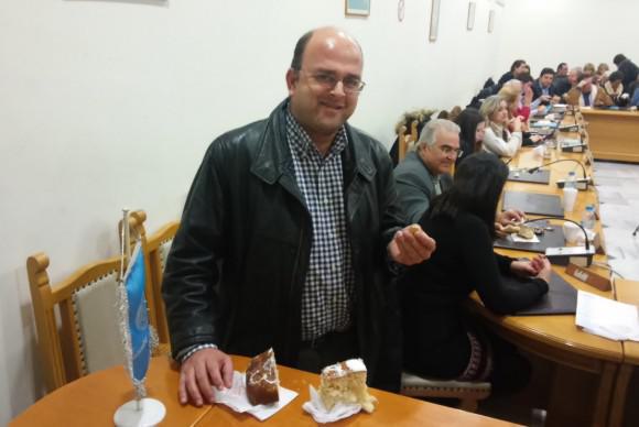 O αντιδήμαρχος Καθαριότητας, Περιβάλλοντος & Οικολογίας, Αρτέμης Καραμολέγκος και η Νίκη Τσεσμελή από τον Σύλλογο Οικισμού Εκτελωνιστών Αλίμου, ήταν οι τυχεροί στην κοπή της πίτας που έγινε χτες, στο Δημοτικό Συμβούλιο της πόλης.