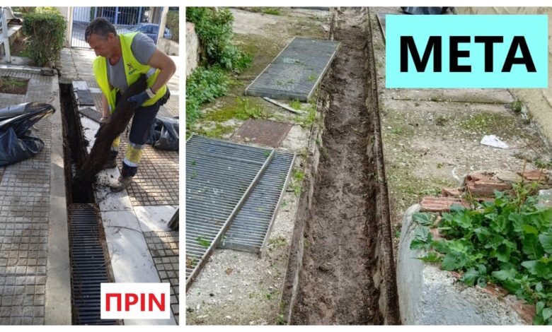 Ο δήμαρχος, Ανδρέας Κονδύλης ανάρτησε και σχετικές φωτογραφίες, αναφέροντας: “Δείτε πως αλλάζουν όψη (και αποκτάνε ξανά λειτουργικότητα) τα φρεάτια που καθαρίζουμε, με μεθοδικότητα, πρόγραμμα και κυρίως… έγκαιρα!”