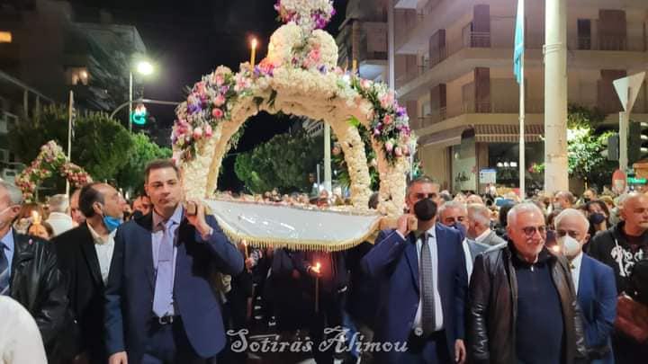 Έπειτα από δύο χρόνια περιορισμών εκατοντάδες πιστοί συμμετείχαν στη περιφορά του Επιταφίου, σε όλες τις εκκλησίες τoυ Αλίμου. Ο Δήμαρχος Ανδρέας Κονδύλης παραβρέθηκε στον Ιερό Ναό της Μεταμόρφωσης του Σωτήρος και μάλιστα κράτησε τον Επιτάφιο κατά την περιφορά του.