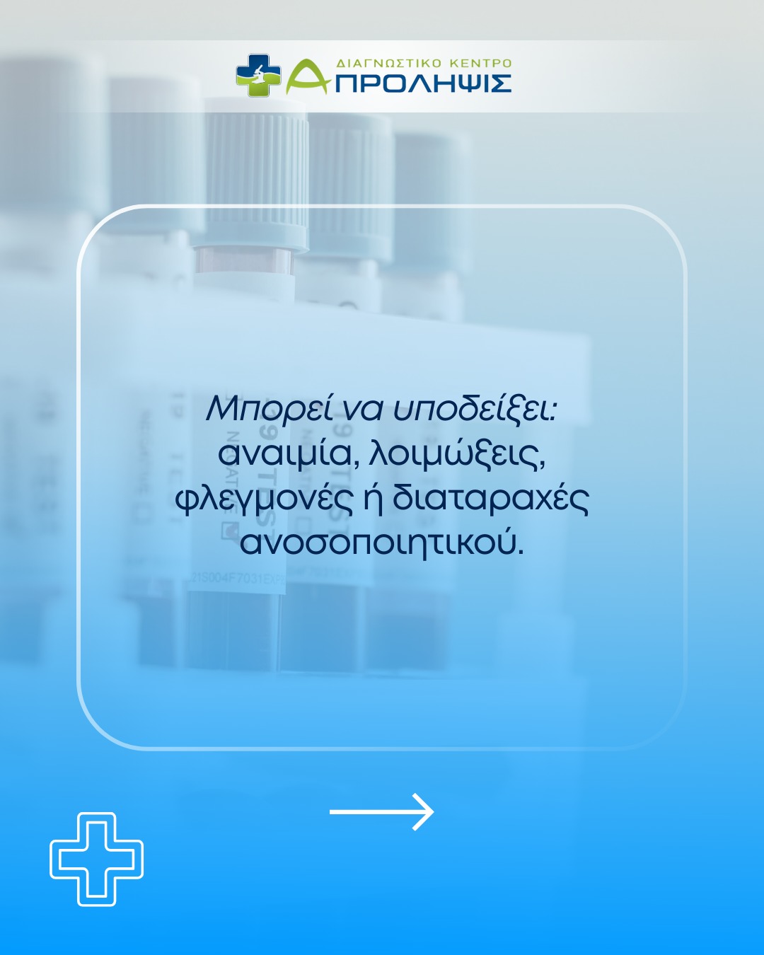 Μέσα από λίγα ml αίματος, μπορούμε να δούμε πώς λειτουργεί το ανοσοποιητικό, αν υπάρχει φλεγμονή, αν υπάρχει έλλειψη σιδήρου ή σημάδια που χρειάζονται περαιτέρω έλεγχο.