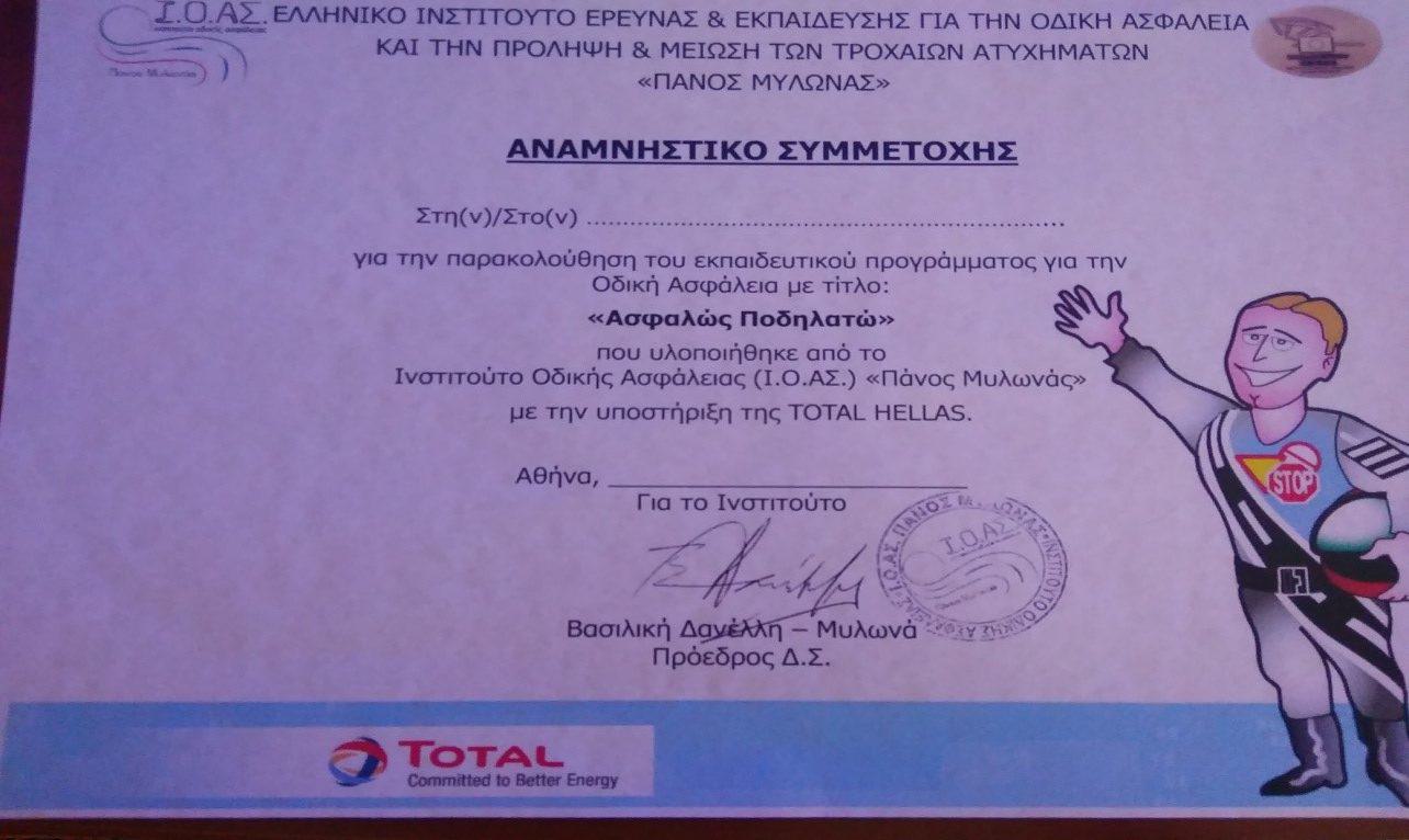 Με στόχο πάντα ασφαλέστερες μετακινήσεις στη χώρα μας το Ι.Ο.ΑΣ. «Πάνος Μυλωνάς», 15 χρόνια τώρα, με τη συνεργασία φορέων και εταιρειών με κοινωνική ευαισθησία, ενημερώνει, ευαισθητοποιεί και εκπαιδεύει τη νέα γενιά, με εκστρατείες, εκπαιδευτικά προγράμματα για την οδική ασφάλεια και δράσεις σε όλη την Ελλάδα.