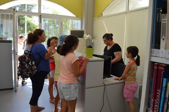 Η Ρούλα, είναι η κοπέλα που βρίσκεται στην υποδοχή και όπως μας λέει οι πολίτες βλέπουν πολύ καλή την κίνηση στο να μείνει η βιβλιοθήκη ανοιχτή για τον Αύγουστο γιατί έχουν την δυνατότητα να δανείζονται βιβλία για τις διακοπές τους. Σε καθημερινή βάση περνούν από κει 15 με 20 άτομα.
