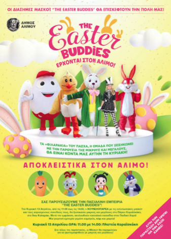 Την Κυριακή 13 Απριλίου από τις 11 το πρωί έως τις 2 το μεσημέρι η “Κουνελοπαρέα” με τις εντυπωσιακές μασκότ και τους χαρούμενους συνοδούς τους, θα ξεσηκώσουν μικρούς και μεγάλους στο Πάρκο Καραϊσκάκη, στο Άνω Καλαμάκι.