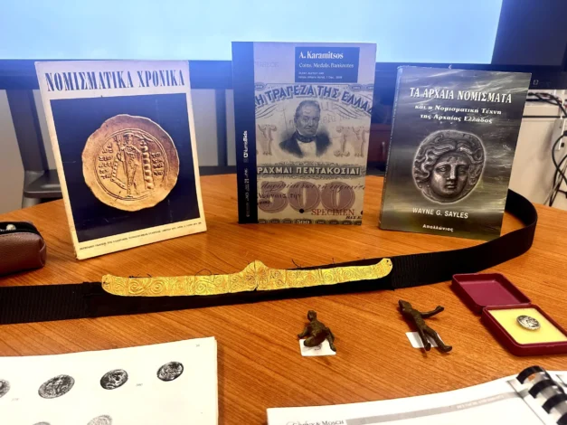 Από την Υποδιεύθυνση Καταπολέμησης Διακίνησης και Εμπορίας Ανθρώπων και Αγαθών της Διεύθυνσης Αντιμετώπισης Οργανωμένου Εγκλήματος συνελήφθησαν πρωινές ώρες χθες, Πέμπτη 8 Μαΐου 2025, στην περιοχή του Αλίμου Αττικής, -2- άτομα, που εμπλέκονται σε υπόθεση παράνομης αγοραπωλησίας αρχαιοτήτων.