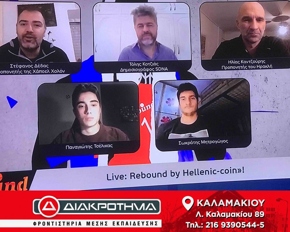 Η κριτική δύναμη σκέψης των μαθητών του φώτισε το διαδίκτυο. Οι μαθητές Παναγιώτης Τσελίκας και Σωκράτης Μητρογώγος έδωσαν δυναμικό παρών στην αθλητική εκπομπή Rebound by Hellenic-coin στην Web TV του SDNA, όπου η μπασκετική δράση περνά από το μικροσκόπιο με τον δημοσιογράφο Τόλη Κοτζιά.