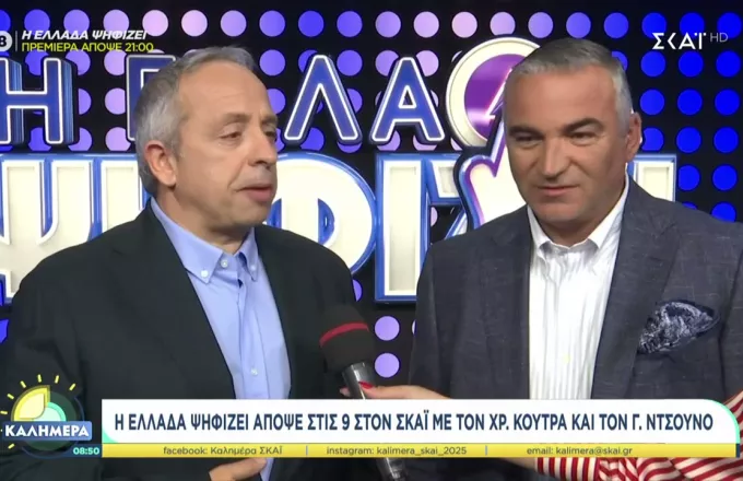 Ένα νέο και πρωτότυπο τηλεπαιχνίδι «Η Ελλάδα ψηφίζει» κάνει απόψε το βράδυ στις 21:00, στην τηλεόραση του ΣΚΑΪ. Το νέο, καινοτόμο, σύγχρονο πρόγραμμα θα παρουσιάζεται σε απευθείας μετάδοση από τους Χρήστο Κούτρα και Γιάννη Ντσούνο.