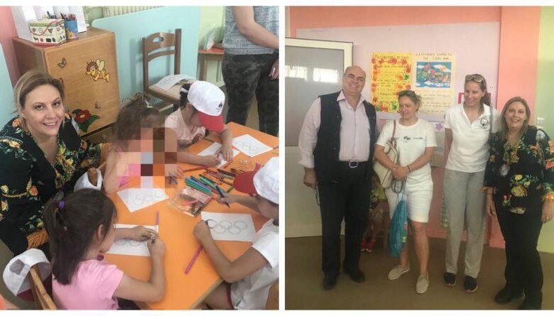 H υποδιευθύντρια του Διεθνούς Κέντρου Ολυμπιακής Εκεχειρίας Ντόρα Πάλλη μαζί με τις Ολυμπιονίκες Βούλα Κοζομπόλη και Βιργινία Κραβαριώτη επισκέφτηκαν τον βρεφονηπιακό σταθμό του δήμου Αλίμου, στην οδό Θουκυδίδου και ανέπτυξαν στους μαθητές την αδιάρρηκτη σχέση του Ολυμπισμού με το σεβασμό στο περιβάλλον. Η Ντόρα Πάλλη ευχαρίστησε τον πρόεδρο της επιτροπής Παιδείας του δήμου Αλίμου Γιάννη Μαριόλη, την υπεύθυνη τύπου της Ένωσης Συλλόγου Γονέων Αλίμου Ντόρα Δανοχρήστου, την διευθύντρια και όλο το προσωπικό του Σταθμού για την πολύ θερμή υποδοχή.