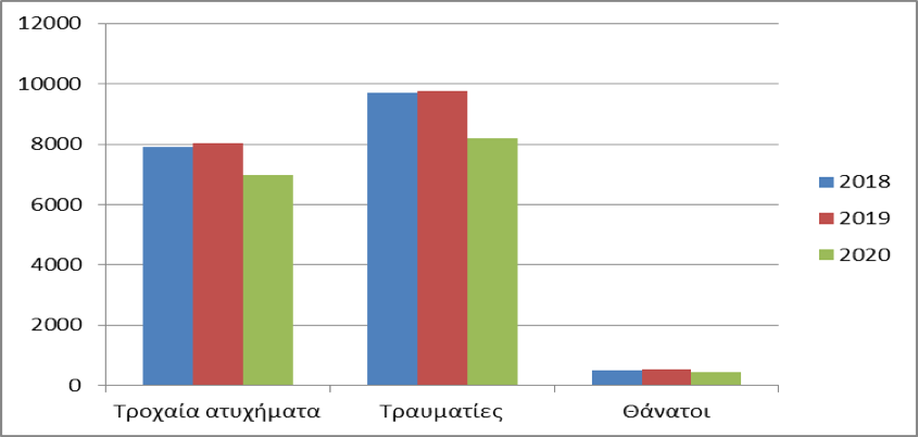 Γενικότερα, σύμφωνα πάντα με τα επίσημα στοιχεία, το πρώτο 9μηνο του 2020 έχουν καταγραφεί στην Ελλάδα 6.977 οδικά τροχαία ατυχήματα σημειώνοντας πτώση 13,1% συγκριτικά με το 2019. Οι θάνατοι που οφείλονται σε αυτά είναι 434 και οι τραυματίες 8.192, έχοντας μειωθεί κατά 18,3% και 16,1% αντίστοιχα.