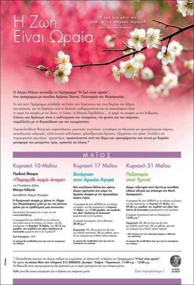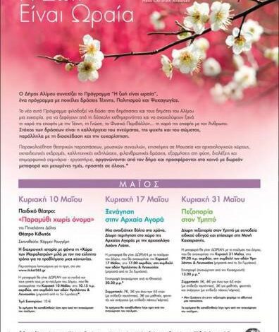 Ο Δήμος Αλίμου εγκαινιάζει το Πρόγραμμα “Η ζωή είναι ωραία”, ένα πρόγραμμα με ποικίλες δράσεις Τέχνης, Πολιτισμού και Ψυχαγωγίας.