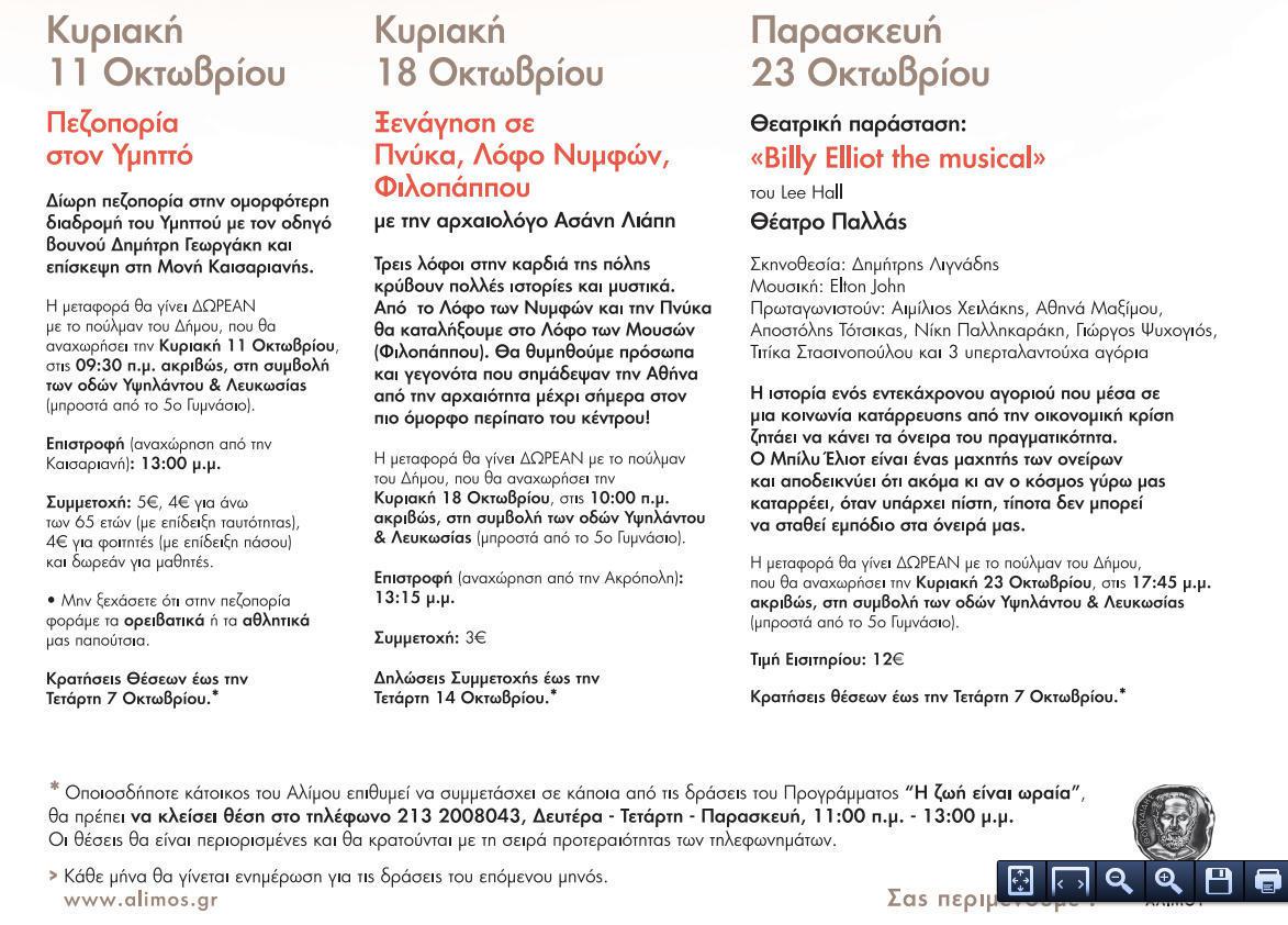 Ένα πρόγραμμα με ποικίλες δράσεις Τέχνης, Πολιτισμού και Ψυχαγωγίας, από τον δήμο Αλίμου.