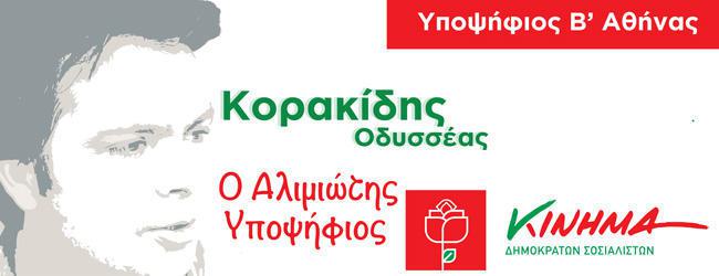 Υποψήφιο Βουλευτή στη Β’ Αθήνας θα έχει ο Άλιμος στις επικείμενες εκλογές. Πρόκειται για τον Κορακίδη Οδυσσέα που κατεβαίνει με το Κίνημα Δημοκρατών Σοσιαλιστών του Γιώργου Παπανδρέου.