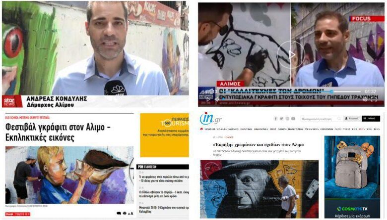 Μεγάλη προβολή είχε στα ΜΜΕ το Old School Meeting Graffiti Festival, που φιλοξένησε ο δήμος Αλίμου την περασμένη Κυριακή. Oι σημαντικότεροι καλλιτέχνες του Ελληνικού Graffiti, αλλά και πολλοί νέοι αυτοδίδακτοι, βομβάρδισαν από το πρωί το γήπεδο των Τραχώνων, στον Άλιμο, δημιουργώντας ένα συναρπαστικό και υψηλής ποιότητας αισθητικό αποτέλεσμα.