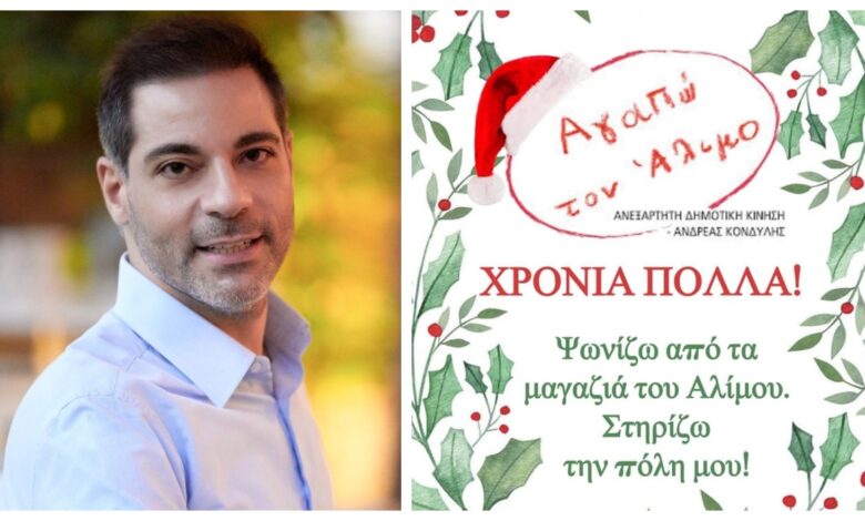 Να ψωνίζουν από τα μαγαζιά του Αλίμου, παροτρύνει τους κατοίκους της πόλης ο δήμαρχος Αλίμου, Ανδρέας Κονδύλης, όχι μόνο τώρα τα Χριστούγεννα, αλλά όλο τον χρόνο. Μην ξεχνάμε ότι επιλέγοντας να ψωνίζουμε από την τοπική αγορά επιτυγχάνουμε: την στήριξη της τοπικής επιχειρηματικότητας, την αύξηση της ανταγωνιστικότητας των επιχειρήσεων και κυρίως προστατεύουμε, εκτός από τους ίδιους τους επιχειρηματίες, τους εργαζόμενους για να έχουν δουλειά στην πόλη τους.