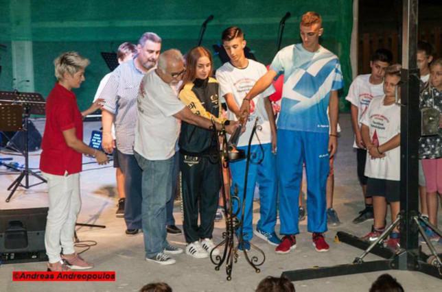 Ο Αντιδήμαρχος Στέφανος Διαμαντής τη στιγμή της παραλαβής της Φλόγας.