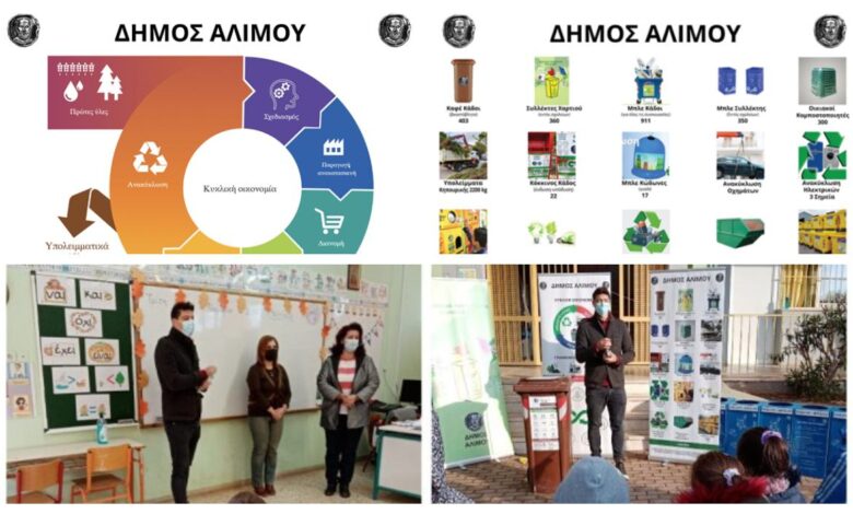 Ο Δήμος Αλίμου συμμετέχει στην Ευρωπαϊκή Εβδομάδα Μείωσης Αποβλήτων (20 – 28 Νοεμβρίου 2021) με συγκεκριμένες εκπαιδευτικές δράσεις στα σχολεία της πόλης και στόχο την ευαισθητοποίηση και ενίσχυση της οικολογικής συνείδησης των μαθητών. Τα παιδιά ενημερώνονται για τις “Κοινότητες Κυκλικής Οικονομίας”, κοινότητες, δηλαδή, βασισμένες στην προσέγγιση της κυκλικής οικονομίας σε όλη την Ευρώπη και πέρα από αυτή, με σκοπό τη μετάβαση προς βιώσιμα πρότυπα κατανάλωσης και παραγωγής.