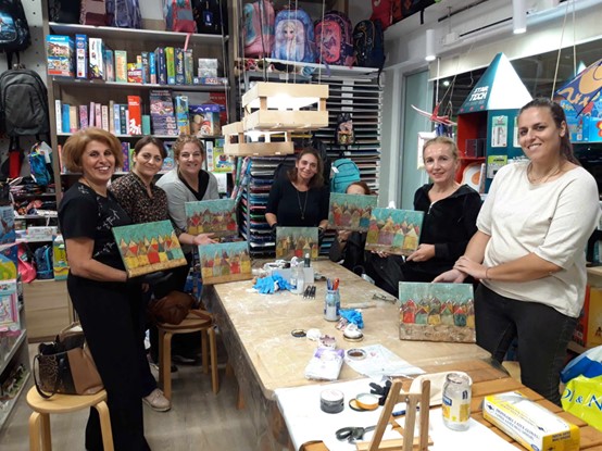 Το βιβλιοπωλείο Mafalda (Λ.Ιωνίας 111)στον Άλιμο, όαση πολιτισμού και άγκυρα για την ψυχή όσων ζητούν μια αξεπέραστη και ουσιαστική σχέση, έχει αποδείξει μέσα από τις δράσεις του, ότι βρήκε ψαγμένους φίλους να το ακολουθούν πιστά. Απόδειξη η τελευταία του δράση, όπου με την σημαντική καθοδήγηση της δασκάλας Νατάσας, προχώρησαν στην επεξεργασία πηλού, τεχνική παλαίωσης και σκίασης, για να δημιουργήσουν έναν πίνακα σε καμβά με σπιτάκια από πηλό.