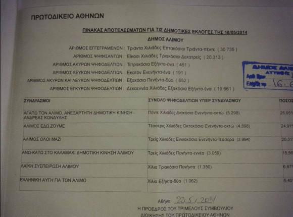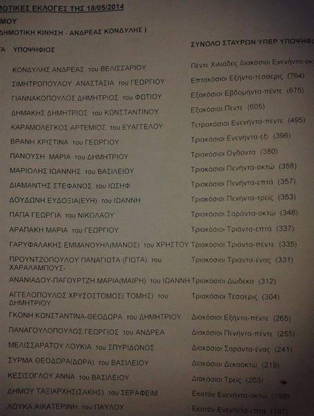 Δείτε τα τελικά αποτελέσματα και τους ψήφους που πήραν οι 20 πρώτοι από τους συνδυασμούς του Ανδρέα Κονδύλη και του Θάνου Ορφανού.