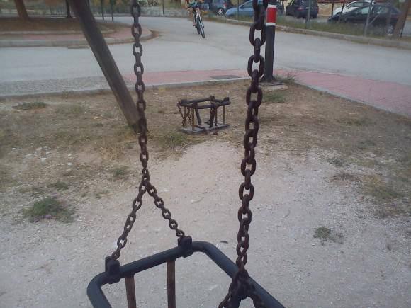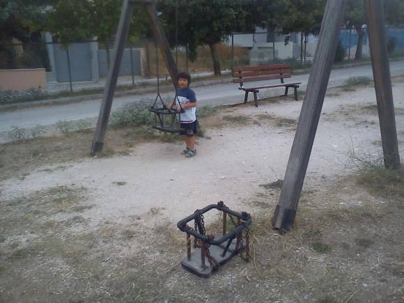 Η εικόνες είναι σημερινές από το Πάρκο Κυκλοφοριακής Αγωγής στον Άλιμο (Κυβέλης και Ρόδων). Από τις τρεις κούνιες έχει μείνει μία. Οι τάβλες της τσουλήθρας έχουν αρχίσει να “μπατάρουν”. Και ο απερχόμενος Δήμαρχος κ. Ορφανός λέει ότι τον “έφαγαν” τα μεγάλα συμφέροντα του Ελληνικού. Δηλαδή οι δημότες πήραν γραμμή από τον Λάτση και τον καταψήφισαν. Οι εικόνες της εγκατάλειψης στις παιδικές χαρές και τα πάρκα δεν έπαιξαν κανένα ρόλο. Ποιος νοιάζεται για την καθημερινότητα…