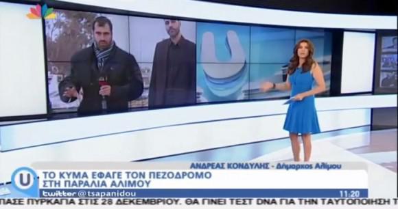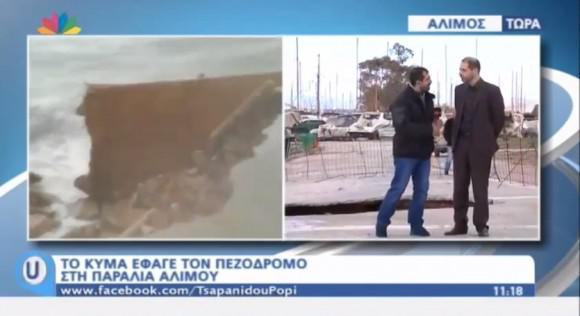 Με το θέμα της τεράστιας τρύπας που έχει ανοίξει το κύμα στον παραλιακό πεζόδρομο του Αλίμου, ασχολήθηκε χτες η εκπομπή LIVE U της Πόπης Τσαπανίδου, στο STAR.