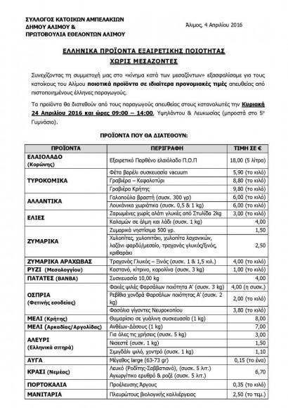 Tην Κυριακή 24 Απριλίου, ο σύλλογος κατοίκων Αμπελακίων Αλίμου και η Πρωτοβουλία Εθελοντών Αλίμου, διοργανώνουν παζάρι με προϊόντα απευθείας από Έλληνες παραγωγούς (Υψηλάντου και Λευκωσίας, μπροστά στο 5ο Γυμνάσιο)
