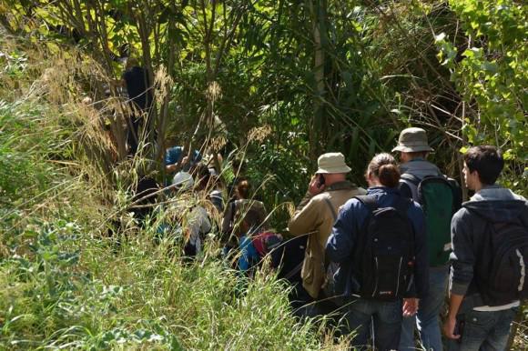 Εκεί ο κόσμος είχε την ευκαιρία να κατέβει στην κοίτη του ρέματος, να βγάλει φωτογραφίες και να γνωρίσει την πλούσια φύση του ρέματος της Πικροδάφνης. Παρότι το νερό που κατέβαζε το ρέμα δεν είχε καμία σχέση με αυτό που κατέβαζε τις δύο προηγούμενες ημέρες, εν τούτοις αποφασίσαμε να μην συνεχίσουμε τον περίπατο στην κοίτη. Αφενός ο κόσμος δεν φορούσε «γαλότσες» όπως είχαμε συστήσει μη μπορώντας να πιστέψει ότι υπάρχει ρέμα στην Αττική με τόσο άγρια φύση, αφετέρου το βρεγμένο χώμα στην κοίτη του ρέματος θα έκανε πολύ δύσκολο το περπάτημα. Συνεχίσαμε κατηφορίζοντας στη δεξιά όχθη μέχρι που ξαναπέσαμε στο αδιαπέραστο τείχος που καθιστά αδύνατο έναν περίπατο κατά μήκος του ρέματος. Κάνοντας πάλι ζιγκ-ζαγκ βγήκαμε στην Ευρυτανίας και διαβαίνοντας την πεζογέφυρα περάσαμε στην αριστερή όχθη.