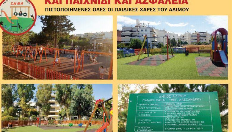 Πιστοποιημένες και οι 21 παιδικές χαρές του δήμου Αλίμου
