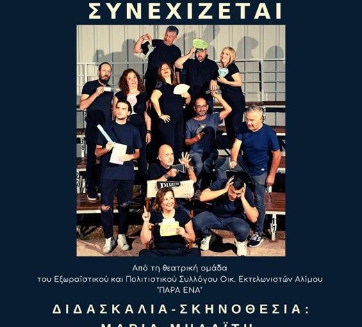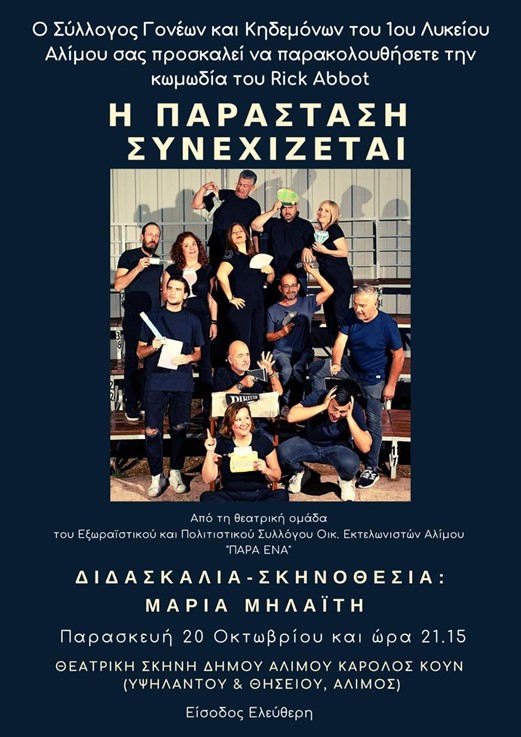 «Play on-Η παράσταση συνεχίζεται» Μια τρελή κωμωδία από την Θεατρική Ομάδα του Αλίμου «Παρά Ένα» στο θέατρο Κάρολος Κουν