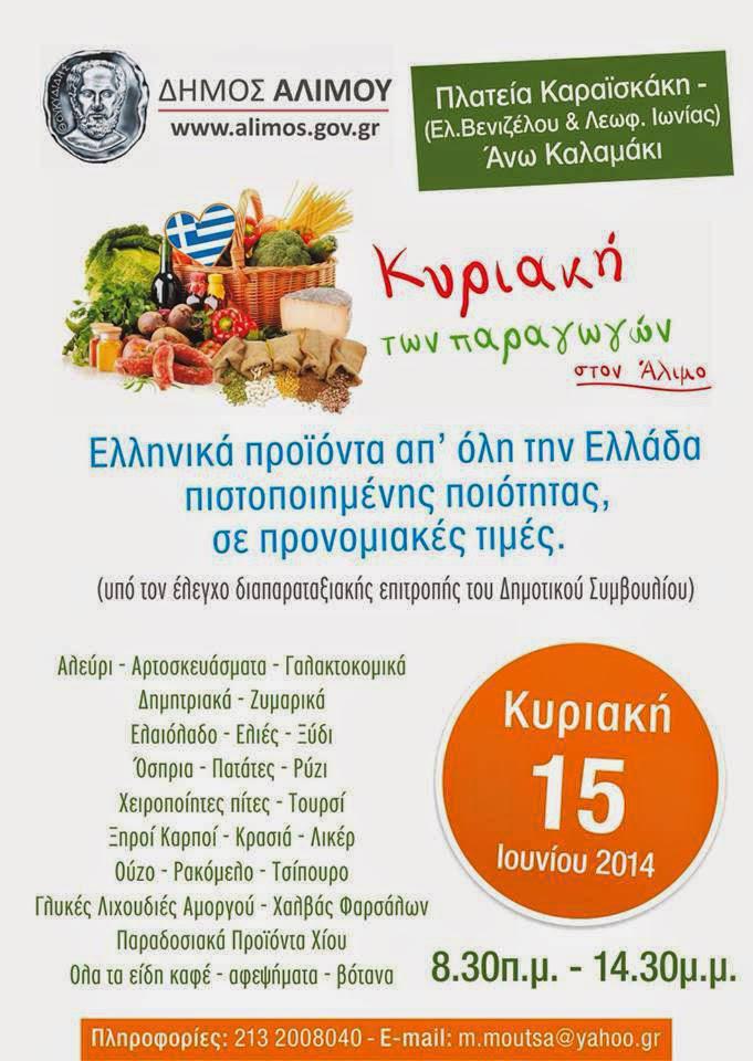 Από τις 08:30 έως τις 14:30 μπορείτε να βρείτε ελληνικά προϊόντα από όλη τη χώρα σε προνομιακές τιμές και πιστοποιημένη ποιότητα.