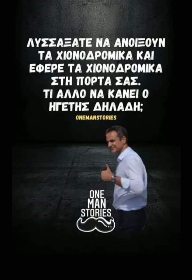 Ναι, συμφωνώ ότι πρέπει να σταματήσουμε τα παράπονα, είναι άδικο να συμβαίνει όλο αυτό όταν ένα Οne man stories επιβεβαιώνει αυτό που όλοι θέλαμε, αλλά κανείς δεν τόλμησε να το πει δυνατά, εκτός από έναν «Λυσσάξατε να ανοίξουν τα χιονοδρομικά και έφερε τα χιονοδρομικά στο σπίτι σας. Τι άλλο θέλετε να κάνει ο ηγέτης δηλαδή;»