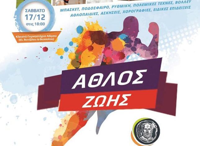 Με πρωτοβουλία του Δήμου Αλίμου και του Θ. Ο. Π. Α. Α. ο «Άθλος Ζωής» αποτελεί την ετήσια πλέον συνάντηση των αθλητικών και πολιτιστικών σωματείων του Δήμου μας με στόχο την καλλιέργεια και την ανάπτυξη της κοινωνικής ευαισθησίας, στο πλαίσιο των Χριστουγεννιάτικων εκδηλώσεων του Δήμου.