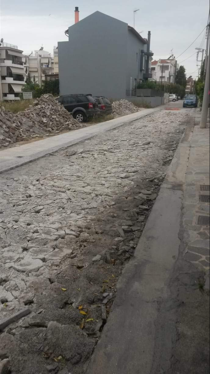 Τέσσερις μήνες μετά, δρόμος και κάτοικοι, βιώνουν ακριβώς την ίδια κατάσταση, στην χειρότερη εκδοχή της. Όσον αφορά τις αρχικές ερωτήσεις των κατοίκων σχετικά με την μελέτη του έργου και την επισήμανση του προβλήματος για την προβλεπόμενη κλίση του δρόμου και την ρύση των νερών, η Τεχνική Υπηρεσία του Δήμου καθώς και η εργολαβική εταιρεία τους διαβεβαίωνε για την τελική επιτυχία του έργου. Έτσι, παρόλο που με τις τότε καιρικές συνθήκες ήταν αυταπόδεικτο ότι τα νερά άρχισαν να λιμνάζουν στις πόρτες τους, το έργο συνεχίστηκε και ολοκληρώθηκε με την ασφαλτόστρωση του δρόμου με κυβόλιθους υψηλής αντοχής σε θλίψη και αντιολισθητική επιφάνεια. Οι κακοτεχνίες επαναλήφθηκαν και έγιναν περισσότερο εμφανείς στον δρόμο.