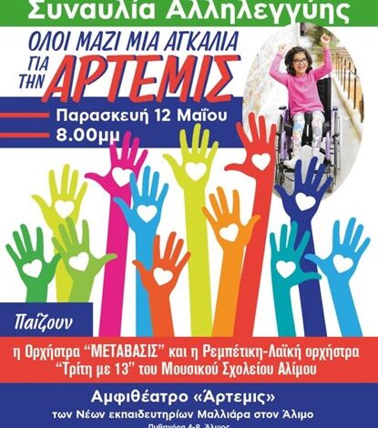 Συναυλία Αλληλεγγύης για την Άρτεμη – Παρασκευή 12/5στον Χώρο Τέχνης και Πολιτισμού «Άρτεμις» των Νέων Εκπαιδευτηρίων Γ. Μαλλιάρα