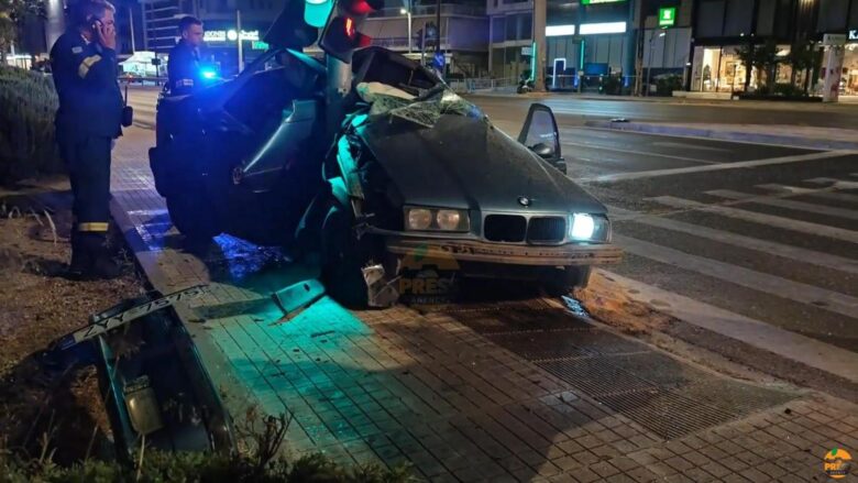 Η BMW στην οποία επέβαιναν τέσσερις νεαροί -ηλικίας 18 έως 21 ετών- εξετράπη της πορείας της επί της Λεωφόρου Ποσειδώνος, στο ρεύμα προς Γλυφάδα, λίγο μετά τη συμβολή με τη Λεωφόρο Αλίμου και “καρφώθηκε” σε φωτεινό σηματοδότη.