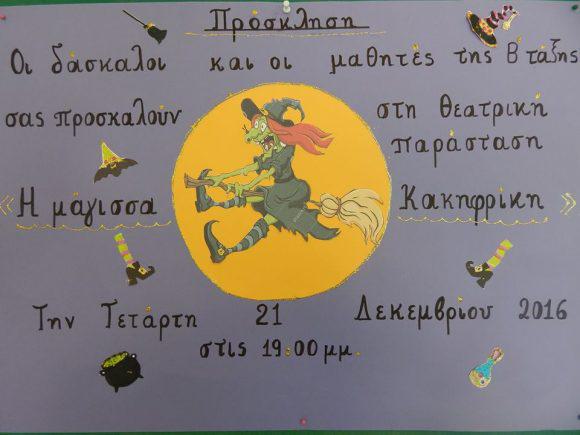 Σας περιμένουμε την Τετάρτη 21 Δεκεμβρίου και ώρα 19:00 μ.μ. να παρακολουθήσετε μαζί μας τη θεατρική παράσταση με τίτλο « Η μάγισσα Κακηφρίκη».