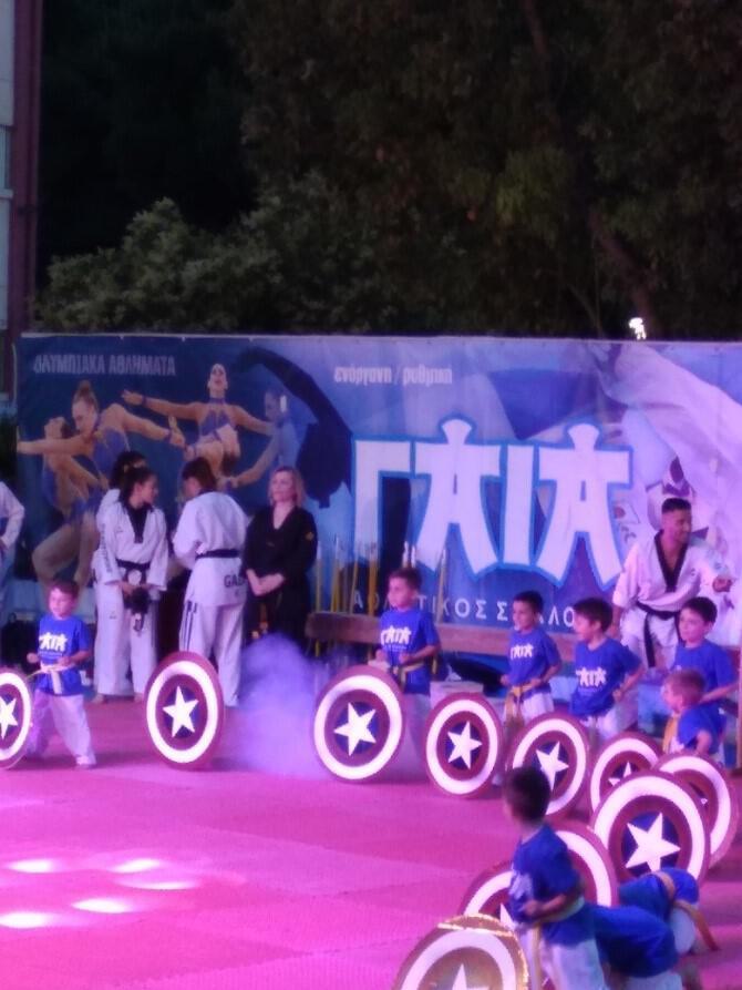 Ινδιάνοι, ήρωες Captain America ,αθλητές με φωτόσπαθα, αλλά και υπό τους ρυθμούς rock ήχων και του «Τhe Floss» από τους πλέον γνωστούς χορούς του ηλεκτρονικού παιχνιδιού «Fortnite», ανέβηκαν μεταξύ άλλων στην σκηνή του Θεάτρου Μαίρη Αρώνη για να μας αποδείξουν απλά ότι οι κινήσεις του Taekwodoμπορούν να συνδυαστούν και με χορό.