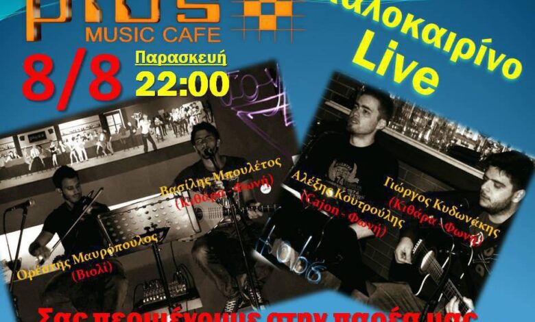Καλοκαιρινό Live @ Plus την Παρασκευή 8/8 στις 22:00